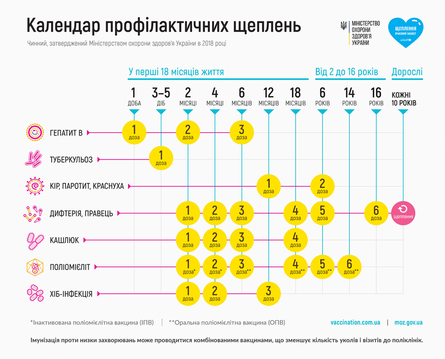 Згідно з календарем щеплень МОЗ, у дитини мають бути наступні відмітки про вакцинацію: