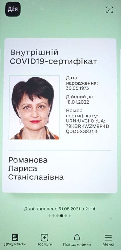 Що стосується Світлани Ковальчук, то вона теж прагне мати сертифікат вакцинації. Поки — паперовий. У лікарні їй зазначили — видадуть протягом тижня.
