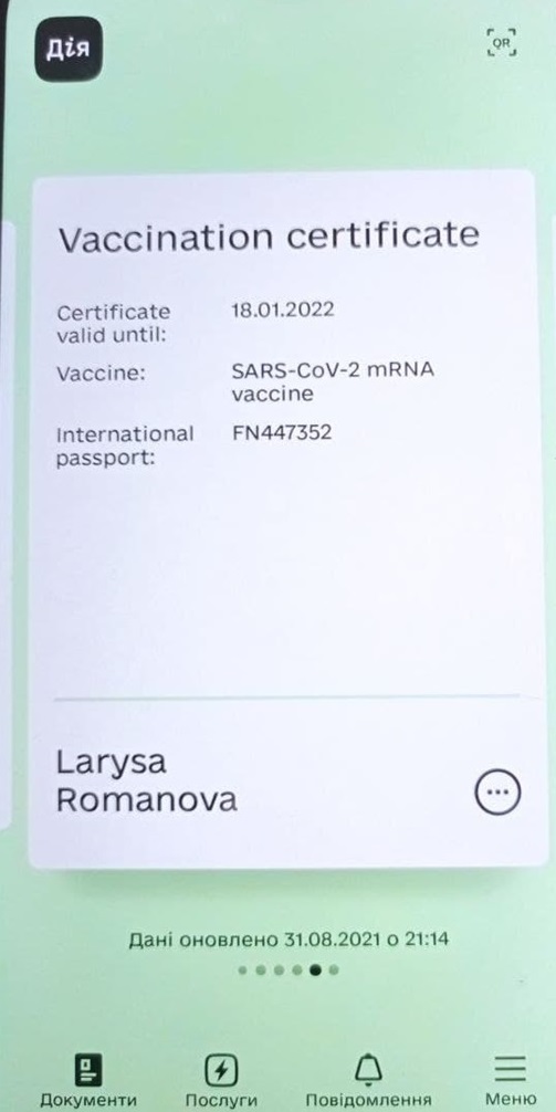 — Щеплювалася я заради можливості подорожувати за кордон, відтак відразу завантажила «Дію». Зазначу, попередньо бажано у додаток завантажити свої паспорти: громадянина України та закордонний, — розповідає Лариса.
