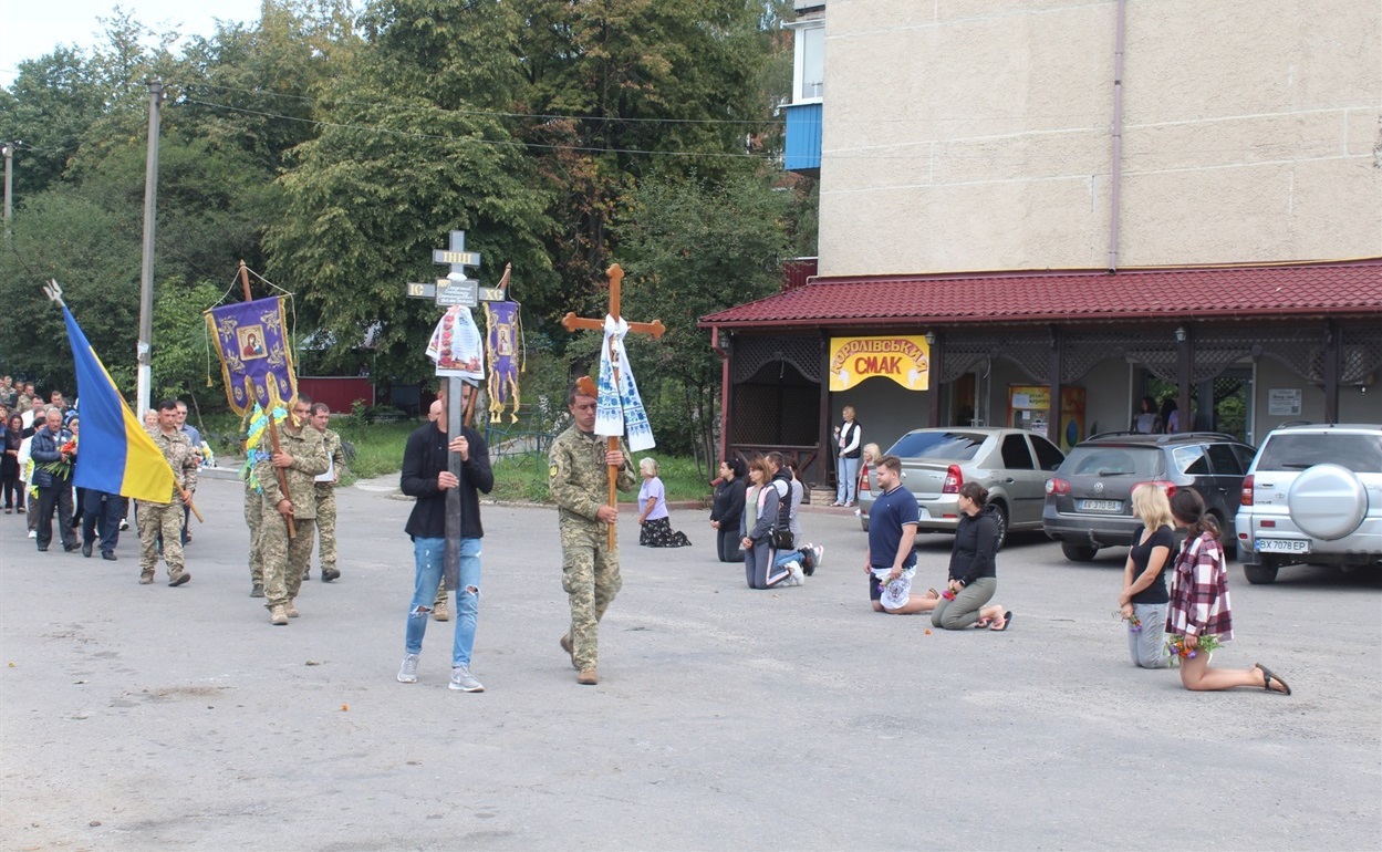 Траурна процесія у Городку рушила вулицею Виноградського та вулицею Миру до Церкви Святої Людмили Чеської. Люди, стоячи на колінах, утворили живі коридори по всьому маршруту процесії. Після літургії за упокій душі загиблого колона вирушила вулицями Київською, Гончара, Шевченка та Мельника. Традиційно городоччани, залишивши всі свої справи, вийшли провести Героя в його останню путь.