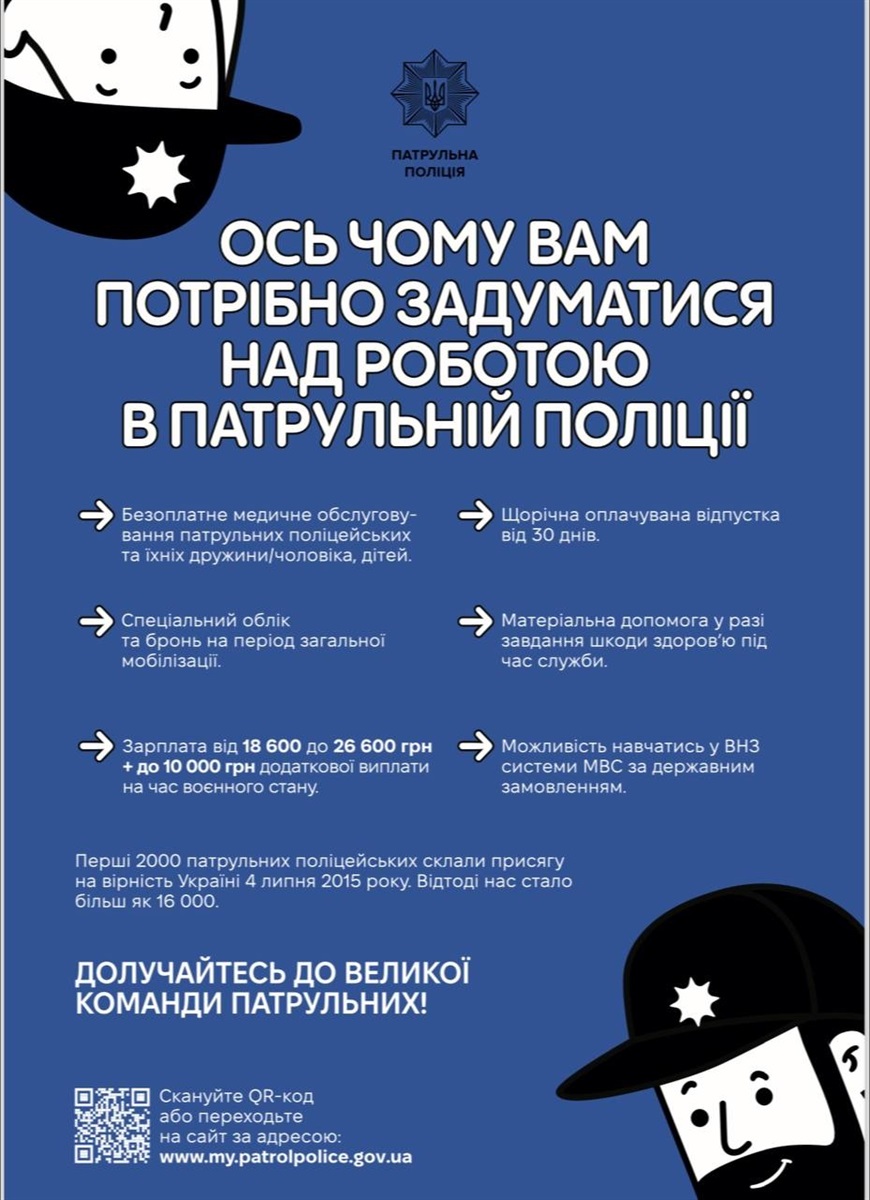 Отримати інформацію про конкурсний відбір та заповнити анкету до патрульної поліції можна за посиланням.