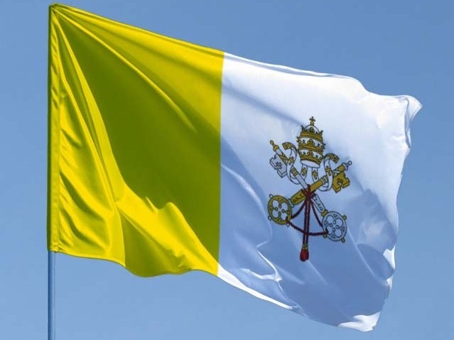 Прапор Ватикану квадратної форми і має жовто-біле тло. На ньому зображені перехрещені ключі святого Петра та папська тіара. Символіка наголошує на духовній владі та незалежності найменшої держави у світі.