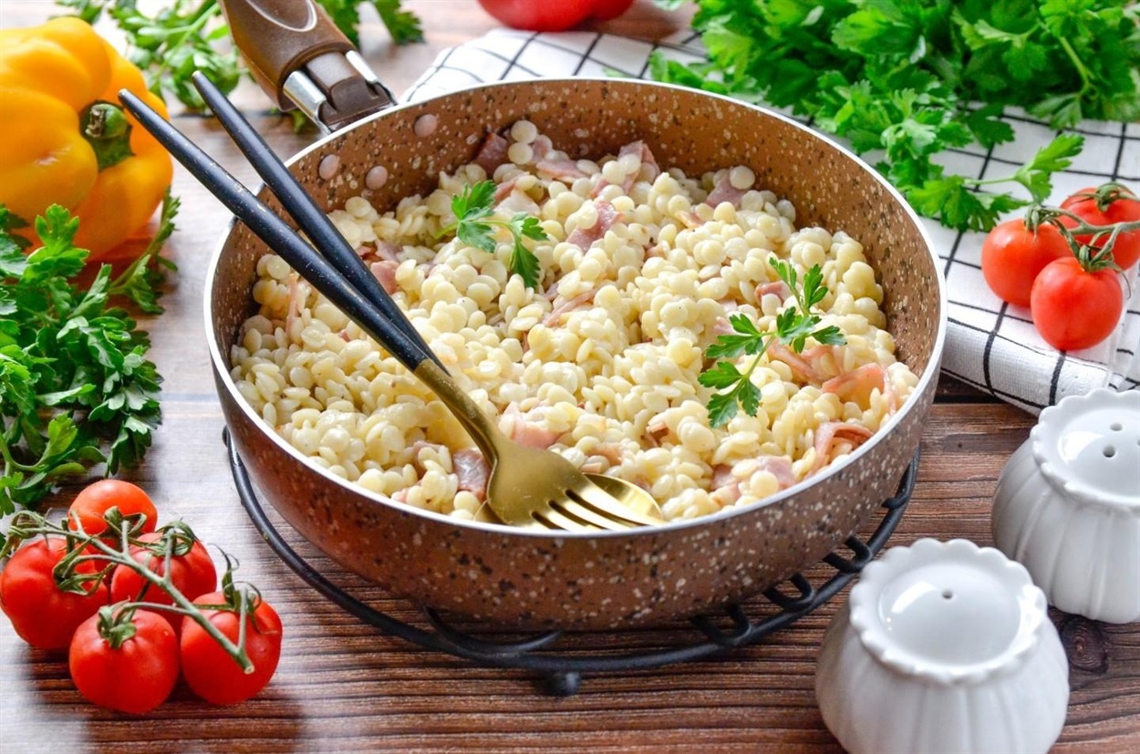 Птітім – це запечені кульки, подібні до пасти, які виготовляють із твердих сортів пшениці та води. Приготування страв із нього – саме той випадок, коли за лічені хвилини просту крупу можна перетворити на досконалу страву. Смачні та прості в приготуванні страви з птітіму від Городок.City – справжня знахідка для гурманів.