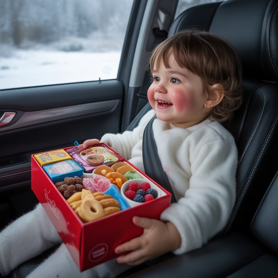 Найпростіший варіант заспокоїти дитину в дорозі – пригостити її чимось смачненьким. Прихопіть із собою щось із того, що дуже любить малюк: печиво, цукерки, ягоди, йогурти тощо. За можливості — запакуйте у яскраві коробочки (дітей це приваблює).