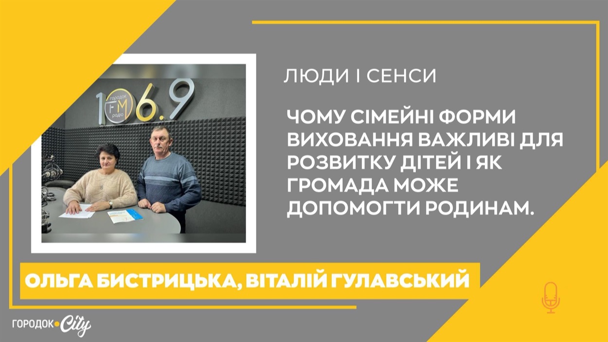 У студії «Городок FM» керуюча справами виконкому Городоцької міської ради Ольга Бистрицька та начальник служби у справах дітей Віталій Гулавський говорили про розвиток сімейних форм виховання, підтримку дітей, які потребують родини, та роль громади у цих процесах.