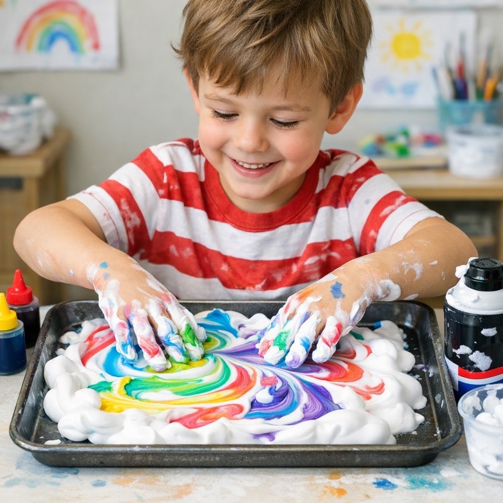 Дайте піну для гоління і тацю — хай малює незвичними «фарбами». Це весело, незвично, а руки завжди можна помити.