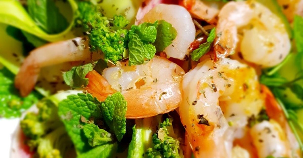 - Викладіть зверху креветки, полийте рештою соусу та посипте кунжутом. Смачного!