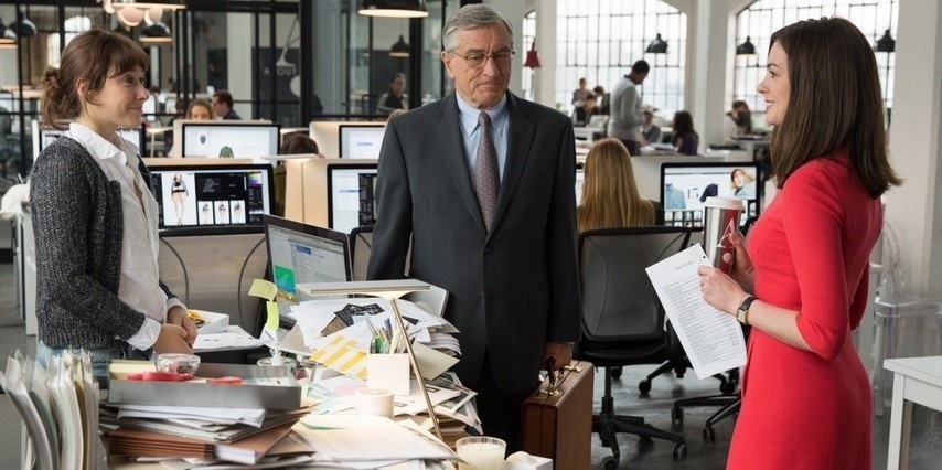 І хоча для нашого героя і справді усе в новизну в даній компанії, він дуже швидко стає компетентним спеціалістом та душею компанії. Йому починають довіряти, з ним радяться і правильно використовують його досвід у багатьох сферах. Та й Джулс, як виявилося, не настільки егоїстична та зверхня: їй потрібно завжди балансувати між роботою та сім'єю, що вибиває її з колії. І тут допомога досвідченого Бена буде дуже доречною.