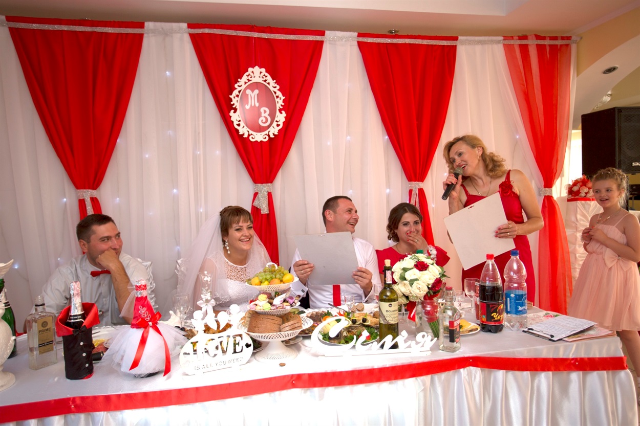- Ведучий на весіллі повинен володіти, хоча б частково, задатками психолога. Ця людина повинна вміти і знати, як працювати з людьми, вміти підбирати програму та конкурси.